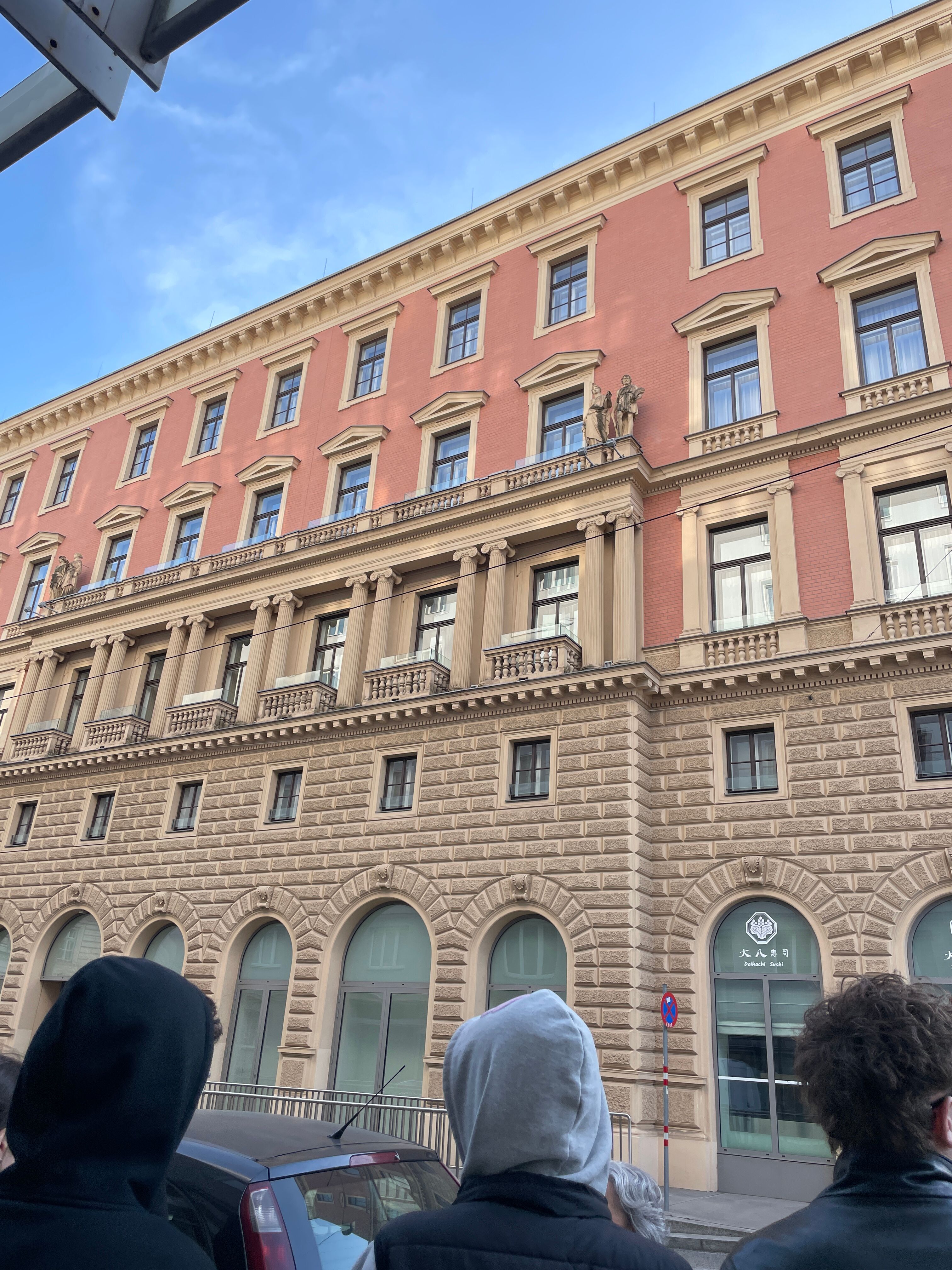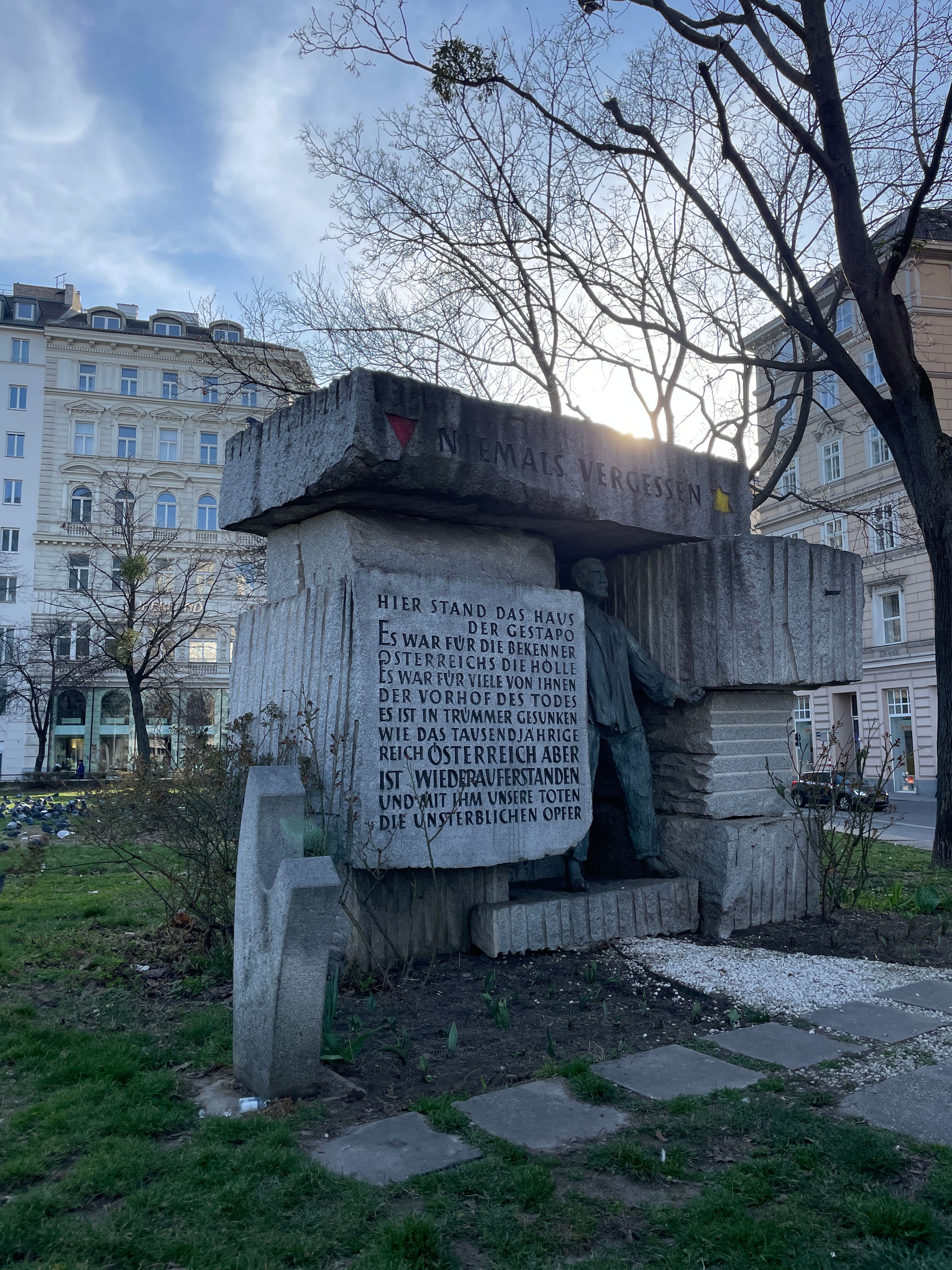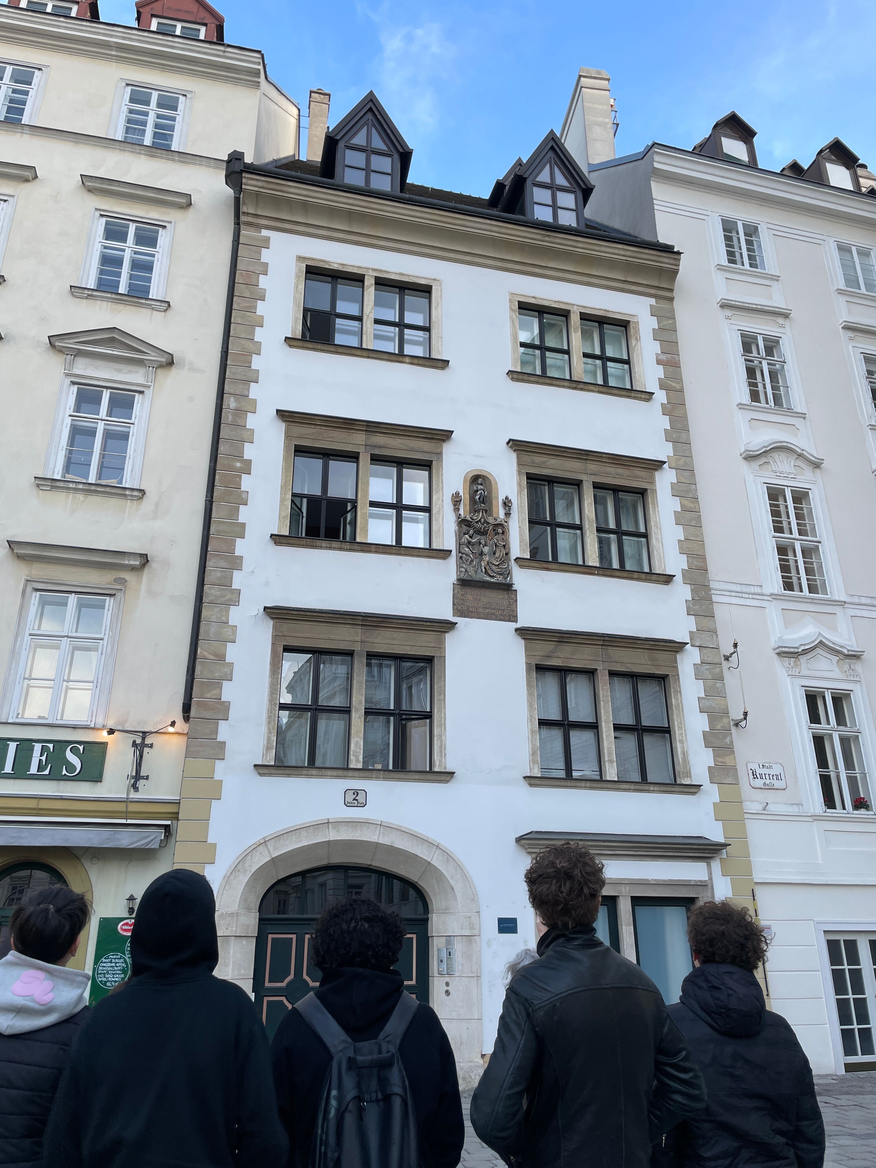 Im Rahmen des Wahlpflichtfachs Geschichte besuchte die 6AB gemeinsam mit Prof. Prettenthaler den Gedenkrundgang „Wir" und die „Anderen", geführt von Martha des Mauthausen Komitees. Los gings am Oskar-Morgenstern-Platz und führte zu sieben historisch bedeutsamen Orten in Wien. Der Rundgang widmet sich der NS-Zeit (1938–1945) und den Opfergruppen des 2. Weltkrieges. Anhand von Mahnmalen und Biografien Betroffener wurde das Terrorsystem an Orten des tatsächlichen Geschehens erfahrbar gemacht. Die sechs Stationen waren: das Polizeigefangenenhaus „Liesl", von dem aus Häftlinge wie Ceija Stojka in Konzentrationslager deportiert wurden; das Wiener Hauptgesundheitsamt, wo die NS-Rassenhygiene bürokratisch umgesetzt wurde; das Mahnmal am Morzinplatz, wo sich ab 1938 die Gestapo-Leitstelle im Hotel „Metropole" befand; der Stadttempel in der Seitenstettengasse, die einzige Synagoge Wiens, die die Novemberpogrome 1938 überstand; das Holocaust-Mahnmal am Judenplatz, das den über 65.000 ermordeten österreichischen Jüdinnen und Juden gewidmet ist und die Feuerwehr am Hof, wo ein Gedenkstein an sechs der NS-Justiz zum Opfer gefallene Feuerwehrmänner erinnert. Der Rundgang machte deutlich, wie vielschichtig die Opfergruppen des Nationalsozialismus waren. Martha verknüpfte die Stationen mit konkreten Einzelbiografien und stellte Bezüge zur Gegenwart her – denn Fragen nach Ausgrenzung und dem Schweigen einer Mehrheit haben nichts an Aktualität verloren.